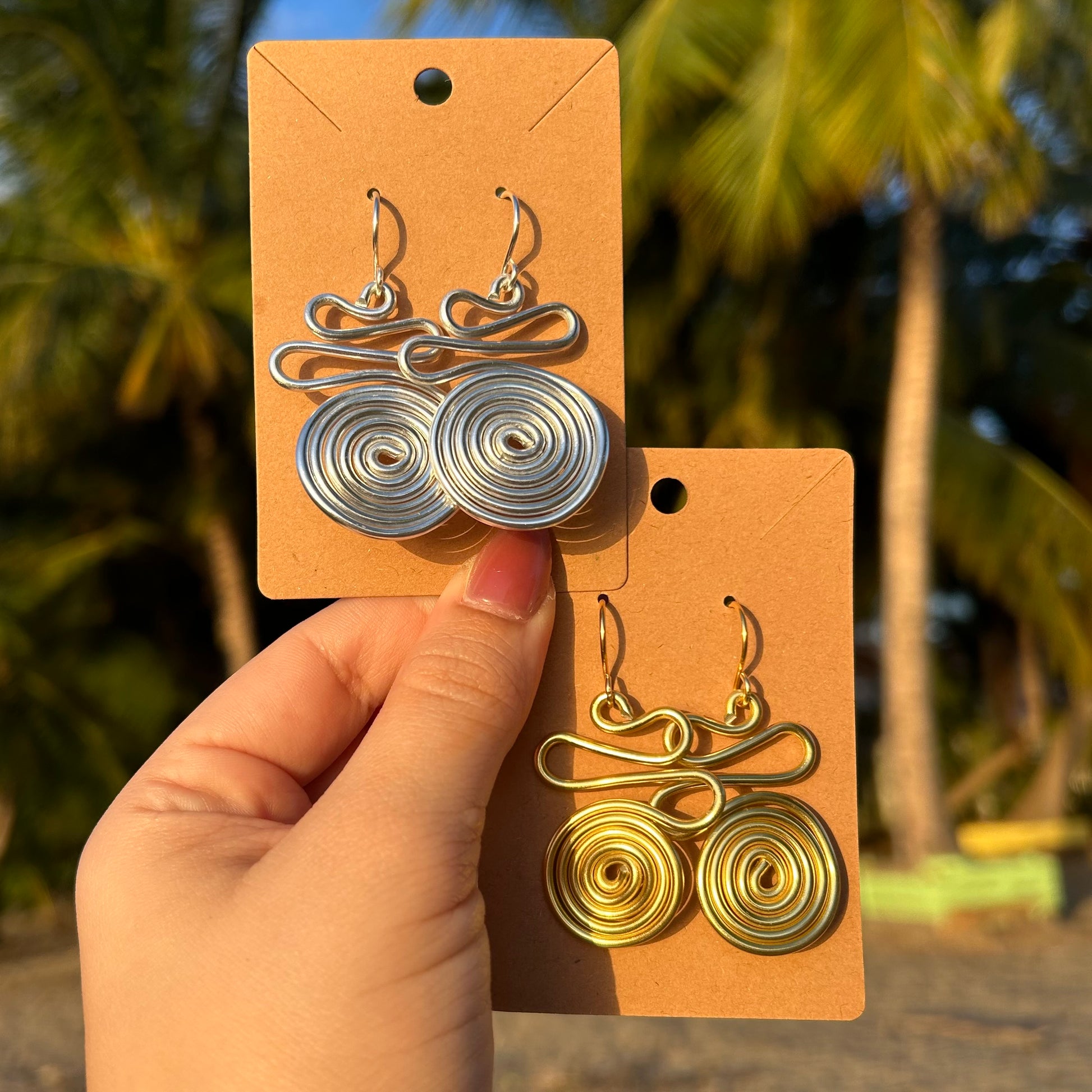 Pantallas con perla colgante hechas en alambre de aluminio.