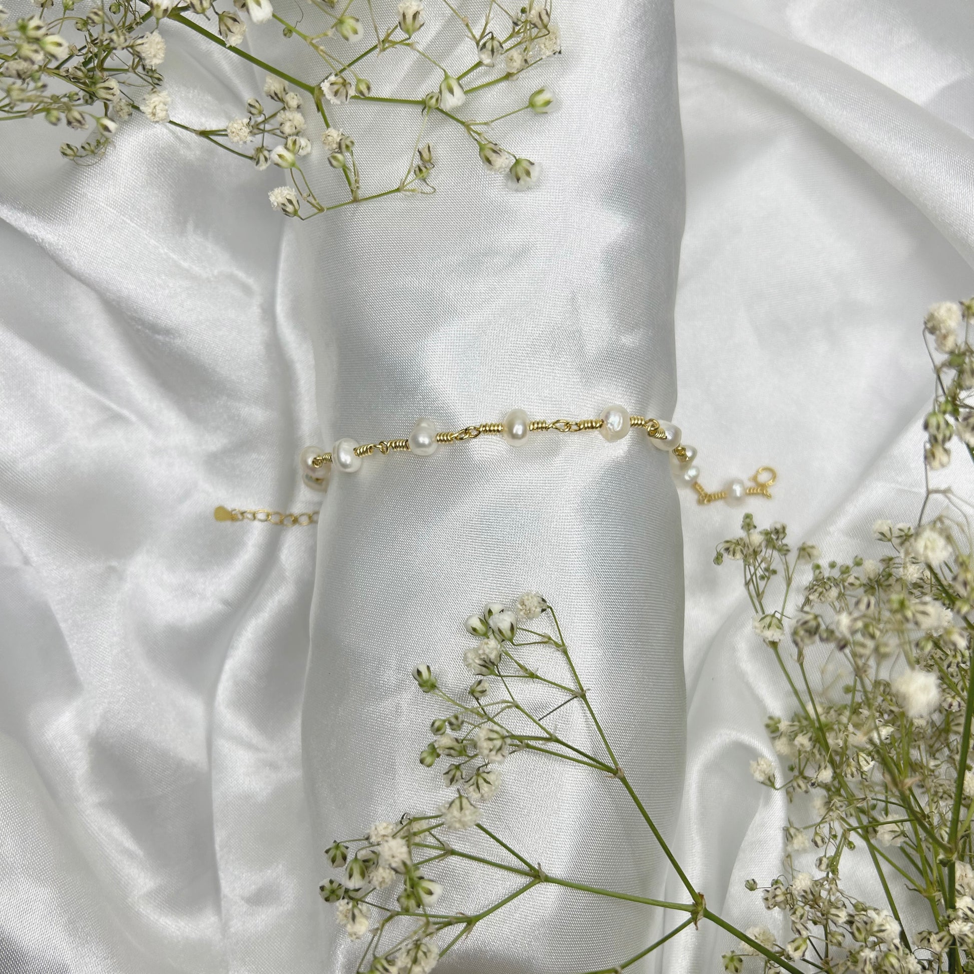 Pulsera con alambre "silver plated" y cuarzos.